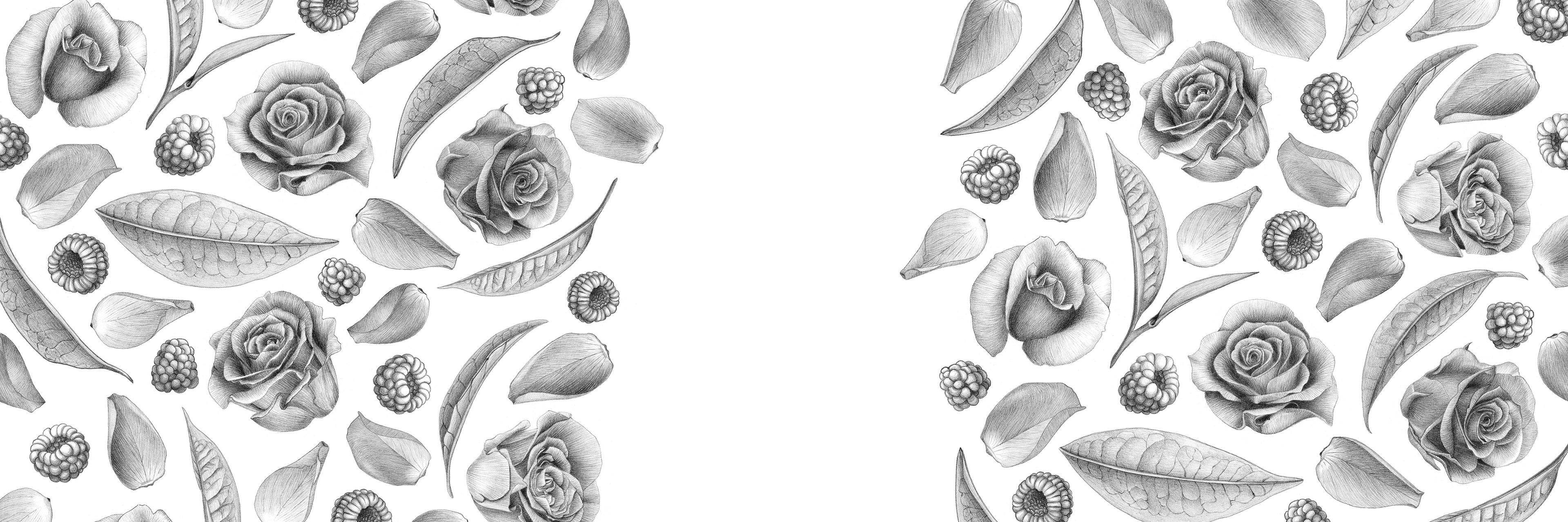 Illustration réalisée pour le packaging d'une boîte de thé blanc à la framboise et à la rose (projet personnel).
