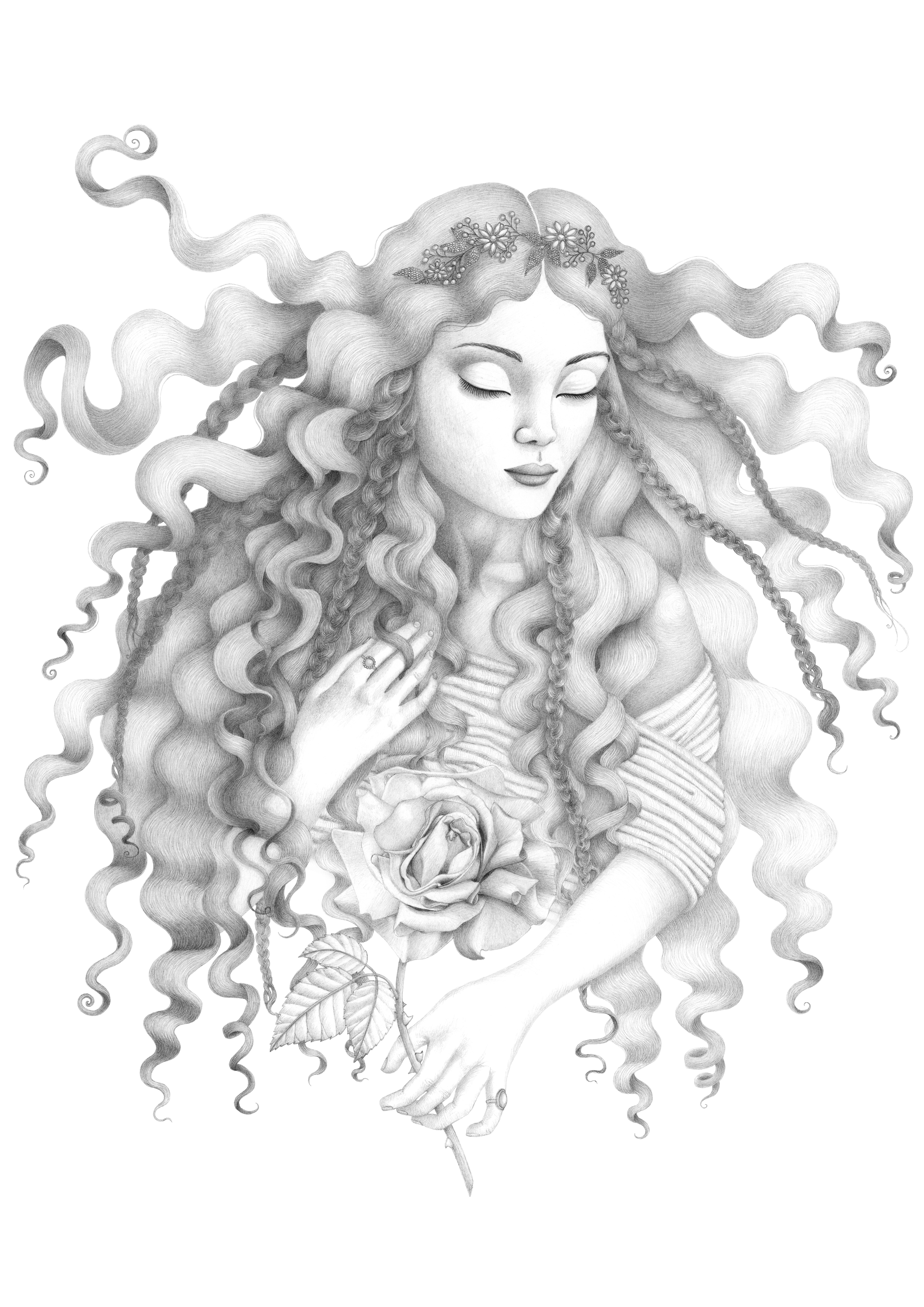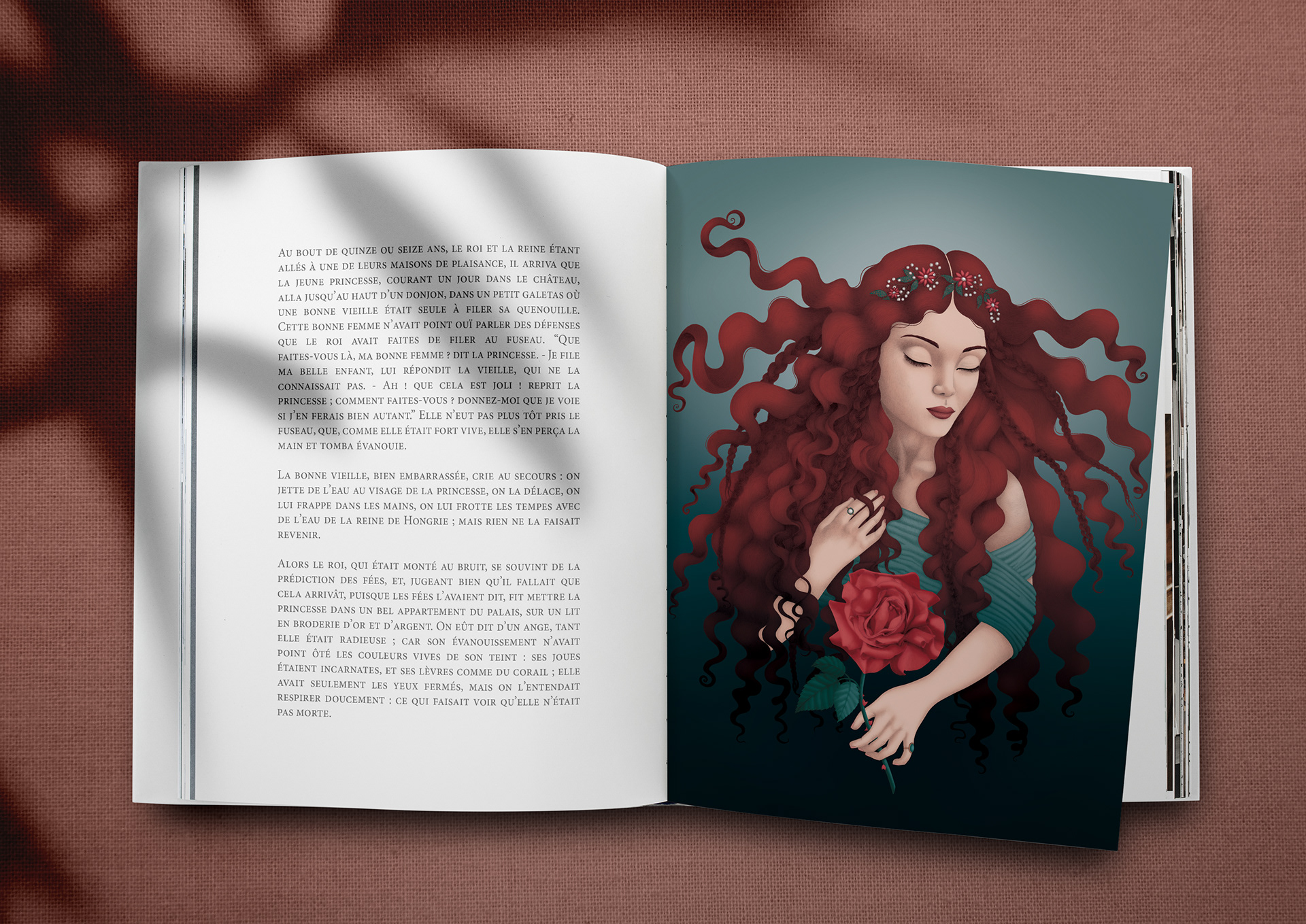 Illustration représentant la princesse endormie du conte "la belle au bois dormant" (projet personnel).