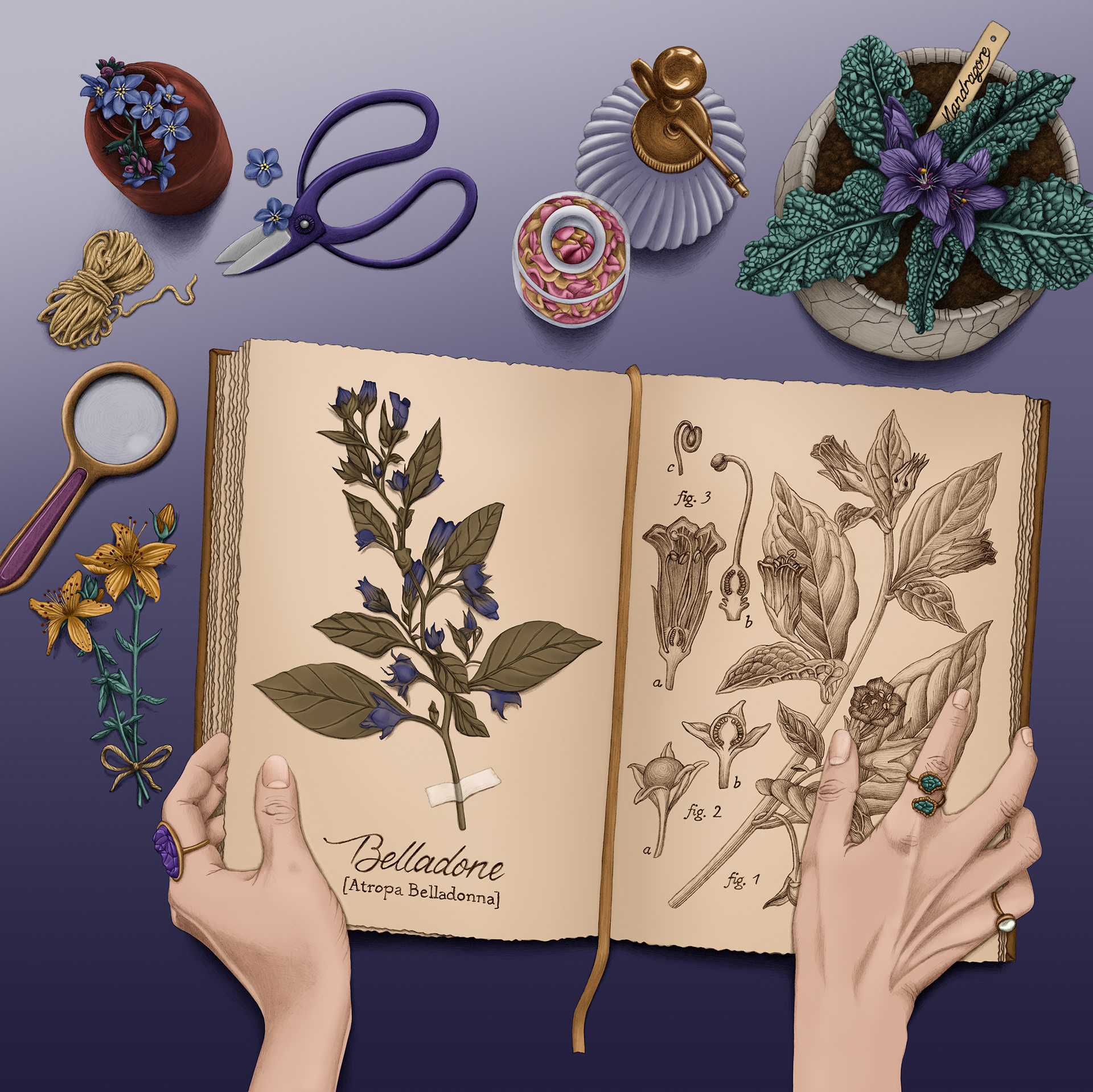 Illustration réalisée dans le cadre d'un challenge artistique sur Instagram, sur le thème de l'automne, des sorcières et de la magie (projet personnel).